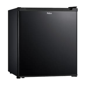 Frigobar Philco PFG5P com 45L de capacidade, classe A em eficiência energética, sistema de refrigeração com compressor, controle de temperatura ajustável, compartimento extra frio, porta reversível e prateleiras removíveis.Características
