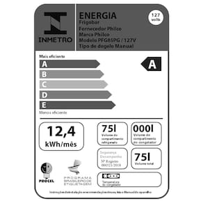 Este frigobar da Philco tem tudo o que uma geladeira comum tem, só que em menores proporções. Ele vem com prateleiras removíveis, ajuste de temperatura, espaço para latas e garrafas e até um compartimento extrafrio, que varia entre 0°C a -5°C. Com selo de classificação A do Procel e compressor que resfria rapidamente os produtos, o PFG85B mede 63,5cm de altura, 44cm de largura e 51cm de profundidade.