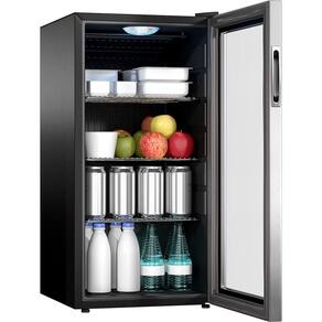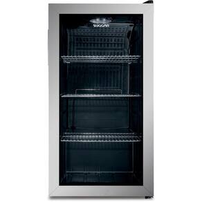 Frigobar com porta em aço inox e vidro integrado, refrigeração por compressor, temperatura regulável, ausência de vibrações.Características