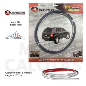 Friso Cromado Universal Flexível 20mm com 5 Metros pa144 Friso da Mediterrâneo de excelente qualidade, a fita dupla face Saint Global permite uma fixação duradora, Mesmo exposta ao calor. Seu carro ficará com aquele visual especial.