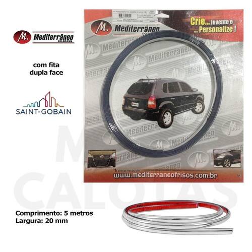 Friso Cromado Universal Flexível 20mm com 5 Metros pa144 Friso da Mediterrâneo de excelente qualidade, a fita dupla face Saint Global permite uma fixação duradora, Mesmo exposta ao calor. Seu carro ficará com aquele visual especial.