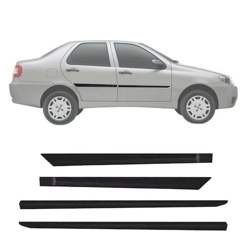 Friso lateral fiat siena fire 2005 a 2015 4 portas 2075a produto de excelente qualidade, fabricado sob medida para o seu veículo. Friso lateral para o fiat siena fire 4 portas 2005 a 2015. Características: - confeccionado em plástico resistente - modelo específico para o veículo - fixado por fita autocolante incluido - cor: preto fosco - referência: 2075a