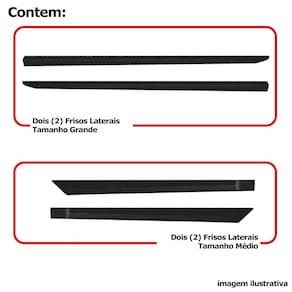 itens inclusos: - um 1 kit com quatro 4 frisos laterais. Dimensões - comprimento: 90 cm / 74 cm - largura: 5 2,5 cm - espessura: 1 cm todos