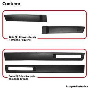 Produto de Excelente Qualidade, Fabricado na medida do seu veículo Dando lhe um visual diferenciado. CARACTERÍSTICAS: - Confeccionado em Plástico Resistente - Modelo Específico para o Veículo - Fixado por Fita Autoadesiva incluida - Cor: Preto Fosco - Referência: 3040A ITENS INCLUSOS: - Um 1 kit de Friso Lateral com quatro 4 partes. DIMENSÕES - Comprimento: 94 cm / 57 cm - Largura: 10 cm todos - Espessura: 2 cm todos de 6 meses para defeitos de fabricação. SOBRE O ENVIO Marca: Não Informado
