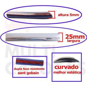Friso Universal Cromado 25mm - 5 Metros Dados do produto Friso decorativo universal Contem: - 1 rolo friso com dupla face Saint Gobain Referência: pa525 Cor: cromado Comprimento: 5 metros Largura: 2,5cm Espessura: 5mm Aplicação: Autocolante fita inclusa Material: PVC Flexível Aplicável em qualquer superfície Sugestão de aplicação: Porta malas - para-choque - portas
