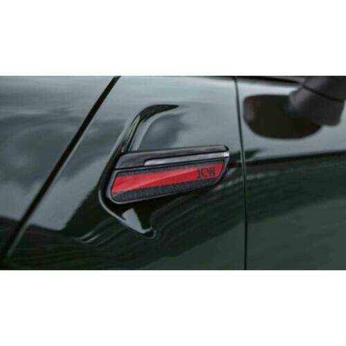 Friso de carbono JCW (carbono costurado) para MINI F55 / F56 / F57 (reestilização). Os componentes padrão dos piscas laterais são simplesmente substituídos por faixas laterais John Cooper Works mais personalizadas, e aqui estão elas, detalhes especiais na vista lateral. A alta qualidade dos materiais utilizados foi comprovada por testes de resistência à luz. O material é resistente a UV, temperatura e água. Inclui 2 unidades (esquerda e direita).
