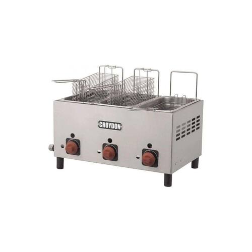 A Fritadeira a Gás 3x3 Litros F3AG da Croydon é referência no mercado de fritadeiras por sua durabilidade e alta portabilidade. O óleo não retém o sabor do alimento preparado, permitindo, também, que sejam fritos alimentos diversos sem a contaminação desde que sejam feitosem momentos diferentes.