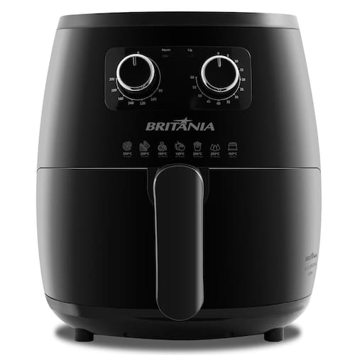 Frita com pouquíssimo ou nenhum óleo; Seletor de temperatura de 80 a 200°C; Timer mecânico de 60 minutos com desligamento automático; Cesto removível com revestimento antiaderente "gold"; Trava de segurança; Sistema de proteção contra sobreaquecimento.Porta-fio