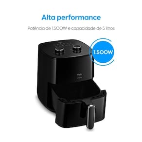 Tecnologia Air Circuit 360 para distribuição uniforme de ar quente. Revestimento antiaderente Black Resist. Controle de temperatura ajustável. Timer com aviso sonoro. Proteção contra superaquecimento.Porta-fio
