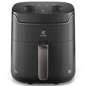 A Air Fryer Electrolux por Rita Lobo (EAF40) possui capacidade total de 5,6 Litros, com cesto interno removível e dupla camada antiaderente, facilitando a limpeza e a remoção dos alimentos. A tecnologia Air Cooking 360° funciona com a circulação de ar quente em 360°, cozinhando os alimentos uniformemente, deixando-os crocantes por fora e macios por dentro.