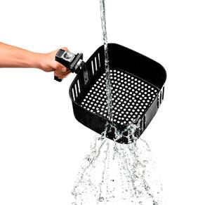 A fritadeira elétrica sem óleo Space 5 da Elgin possui 5l de capacidade, potência de 1700w e revestimento antiaderente com tecnologia black resist, que garante maior durabilidade. Seu sistema de circulação de ar ultrarrápido, air circuit 360º, frita e economiza energia. Seu cesto de fritura é removível e super fácil de limpar. Ela conta com uma proteção contra super aquecimento, além de possuir controle de temperatura de 80°c a 200°c que permite você programar a temperatura de preparo para cada tipo de alimento, timer para até 60 minutos com aviso sonoro e desligamento automático, assim você pode deixar preparando sua refeição enquanto realiza outras tarefas, base antiderrapante e alça fria que facilitam o uso.