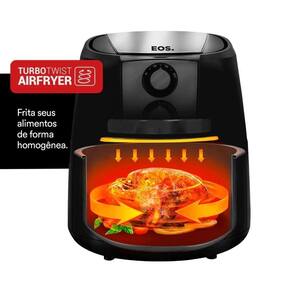 Fritadeira Air Fryer EOS Chef Gourmet EAF42P 4,2 Litros Preta 127V Com esse novo conceito e com um design moderno, a Fritadeira Air Fryer EOS é ideal para você que está entrando no mercado. Você irá adquirir um produto prático, elegante e de alta qualidade, desenvolvido para facilitar no seu dia-a-dia. Com a capacidade de diversas configurações, ela é perfeita para preparações rápidas e na medida certa para seus convidados e clientes. A Air Fryer EOS utiliza a exclusiva tecnologia Twist Fry que garante a crocância de seus alimentos, deixando aquele gostinho de fritura sem a necessidade de utilizar óleo. Com um sistema antiaderente MaxxiClean que facilita a limpeza e não gruda Muito mais espaçosa, possuindo 4,2 litros para fazer suas receitas de forma incrível. Com termostato na maior precisão ao selecionar a temperatura da sua Air Fryer e com a capacidade de você levar ela para qualquer lugar facilmente. DIFERENCIAIS: - Portátil- Termostato- Design compacto- Muito mais espaço- Melhor saúde: Frita sem utilizar óleo- Maior velocidade: Exclusiva tecnologia twist fry- Temporizador com aviso sonoro de término do preparo de alimentos- Sistema Antiaderente MaxxiClean que facilita na limpeza e não gruda - Segurança com sistema de proteção para evitar a queda acidental do cesto interno- Ajustável com temporizador programável de até 30 minutos e temperatura ajustável de até 200C DADOS TÉCNICOS: - Marca: EOS- Voltagem: 110V- Potência W : 1500W- Modelo: EAF42P 127V- Cor: Preta e inox- Peso: 4,7 kg- Altura: 34 cm- Largura: 35 cm- Profundidade: 24 cm- Cuba: 4,2 litros- Cesto: 3,5 litros- Frequência Hz : 60Hz- Temporizador programável: Sim CONTEÚDO DA EMBALAGEM:- 1 Fritadeira Air Fryer EOS 4,2 litros- Manual de instruções Aqui você está em 1º Lugar