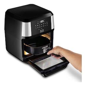 Além de ter um design moderno e com grande espaço interno, acompanha 1 forma de bolo, 2 bandejas de inox e 1 coletor de gordura, facilitando na hora de preparar seus alimentos.