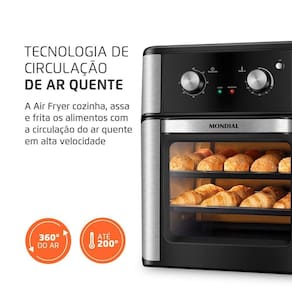 Fritadeira e Forno Elétrico Mondial Air Fryer Oven 12L - Preto/Inox