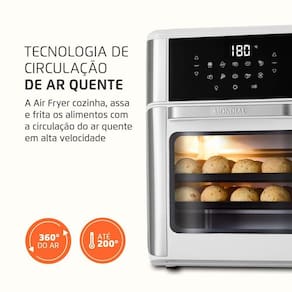 A Air Fryer Forno Mondial AFON-12L-WI une a praticidade da fritadeira a ar com a versatilidade de um forno. Perfeita para preparar refeições saudáveis e saborosas, ela assa, cozinha, gratina e frita sem a necessidade de óleo. Com 12 litros de capacidade, painel digital e um kit completo de acessórios, ela transforma a sua rotina na cozinha.