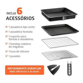 Fritadeira Air Fryer Forno Oven Mondial Digital AFO-25L-BI 25L com painel digital, 12 funções pré-programadas, luz interna, assadeiras e cesto antiaderentes, e temperatura máxima de 220°C.Desligamento automático