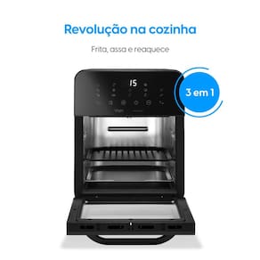 Um de seus principais diferenciais é o painel touchscreen digital, que oferece 10 funções pré-programadas, facilitando o preparo com apenas um clique. Além disso, sua funcionalidade 3 em 1 assa, frita e reaquece os alimentos de maneira eficiente, enquanto a tecnologia Air Circuit 360° garante um cozimento uniforme, utilizando pouco ou nenhum óleo, o que pode reduzir até 80% da gordura.