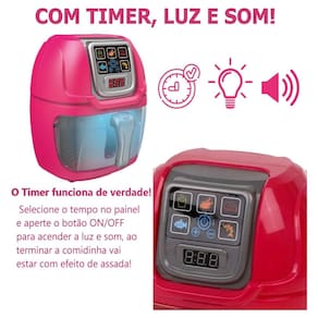Fritadeira De Brinquedo Cozinha Infantil Com Timer Luz Som - Mania de Casa Fritadeira Elétrica Air Fryer DMT6833 A Fritadeira Elétrica Air Fryer DMT6833 da linha Mania de Casa vai transformar a brincadeira de casinha em uma experiência ainda mais realista e divertida! Com design encantador e funcionalidades simuladas, esta mini fritadeira é perfeita para estimular a imaginação das crianças enquanto brincam. Brincar de casinha vai ficar ainda mais divertido com a linha Mania de Casa! Selecione o tempo no painel e aperte o botão ON/OFF para acender a luz e som, ao terminar a comidinha vai estar com efeito de assada! Acompanha cinco comidinhas, dois pratinhos, um pegador e uma caixinha! A Fritadeira Elétrica Air Fryer DMT6833 proporciona horas de entretenimento criativo, incentivando a imaginação e o desenvolvimento das habilidades motoras das crianças. Especificações: - Marca: Dm Toys - Código de barras: 7899205968337 - Modelo: DMR6833 - Idade recomendada: a partir e 03 anos - Material/Composição: Plástico ABS, PP - Utiliza 3 pilhas "AA" (não incluídas) - Aprovado pelo inmetro - REGISTRO INMETRO: 003 920/2023 - Possui luz e som - Possui Timer funcional Medidas: - Altura: 19cm - Largura: 15cm - Comprimento: 15cm Contém: - 1 fritadeira elétrica - 5 comidinhas de plástico - 2 pratos de plástico - 1 pegador de plástico - 1 caixa de papel