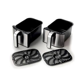 Fritadeira Air Dual 9L MetalPara quantidades duplas de frituras ou cozimento de alimentos separados Sem problema, graças aos 2 cestos antiaderentes, indicado para peixes fritos, carnes, croquetes, batatas fritas e empanados. Com a Fritadeira Air Fryer Dual Metal você pode fritar qualquer prato em quantidade dupla, usando apenas uma colher de sopa de óleo para obter frituras saudáveis e saborosas ao mesmo tempo. Graças aos 2 cestos separados, 4,5 litros cada, com Air Fryer Dual Metal da Ariete você pode cozinhar até 3,6 kg de batatas fritas de uma só vez Mas não só batatas fritas Também croquetes, peixes, carnes e muitos outros alimentos empanados, congelados prontos para fritar, e frescos e recém-empanados, graças a 11 programas predefinidos.Graças à alta temperatura do ar a Air Fryer cozinha os alimentos com o ajuste de 35C até 200C, que circula 360 em alta velocidade dentro da câmara de cozimento e garante uma distribuição uniforme do calor no interior. É justamente o ar quente que permite um cozimento homogêneo dos pratos e a formação de uma crosta crocante por fora, que não deixa nada a desejar à fritura tradicional. Graças ao ar quente, não haverá necessidade de adicionar tanto óleo para obter uma fritura saborosa, porque uma simples colher será suficiente, desta forma você trará para a mesa alimentos mais leves, mas saborosos para toda a família.Especificações:modelo: 4625Cor: Preto e prataPotência: 1700WCapacidade total: 9L, dois cestos de 4,5L cadaCapacidade das cestas básicas: 3,6 kg 1,8kg x 2 Cestos removíveis antiaderentes: 2Funções: Zona dupla, cozinheiro duplo, sincronizaçãoPainel digital: LED toque11 programas predefinidos: SimTemporizador: Até 60 minutosTemperatura ajustável: 35C - 200CLivro de receitas incluído: SimDimensões C x A x L : 41,5cm x 32cm x 35,5cmPeso do produto: 7,6 KgPeso da caixa: 8,4 Kg SKU: 00C462509ARBREAN: 8003705122017