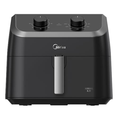 Fritadeira Air Fryer Midea Widemax com revestimento antiaderente Black Stone, sensor de desligamento automático e partes laváveis em lava-louças.Porta-fio