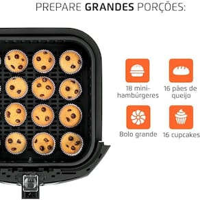 O modelo conta com controle de temperatura e timer, permitindo ajustar melhor o preparo de acordo com cada alimento. Além disso, sua capacidade ampliada favorece uma rotina mais prática, reduzindo a necessidade de preparar os alimentos em várias etapas. É uma opção eficiente para quem valoriza desempenho, facilidade de uso e mais produtividade na cozinha.