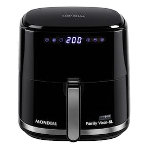 Painel digital touch, visor frontal transparente com iluminação interna, design em inox, cesto quadrado, cesto removível com revestimento antiaderente Duraflon, circulação de ar quente, aviso sonoro e desligamento automático.Porta-fio