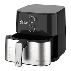 Fritadeira Air Fryer Oster com capacidade de 4,6 litros, potência de 1500W, timer de 60 minutos, ajuste de temperatura de 80°C a 200°C e grelha removível Easy Clean.Porta-fio