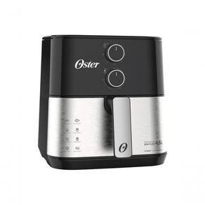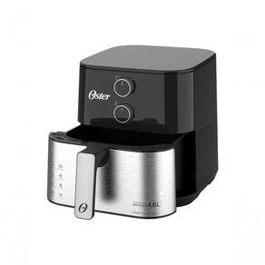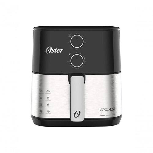 Fritadeira Air Fryer Oster 4,6L com capacidade de 1500W, timer de 60 minutos e temperatura ajustável de 80°C a 200°C. Possui grelha Easy Clean removível e design compacto.Porta-fio