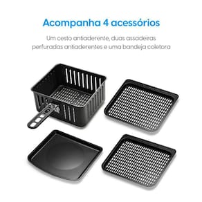 Acessórios: 2 assadeiras antiaderentes, 1 bandeja coletora & 1 cesto de 5,2L