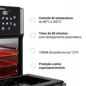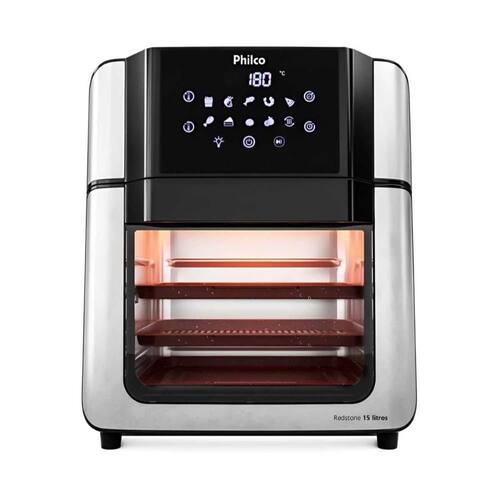 Fritadeira e forno 2 em 1, Painel digital com 10 funções pré-programadas, Tecnologia Air Fry 360, Revestimento Redstone, Visor Glass, Luz Interna, Base antiderrapante, Porta Removível, Acessórios removíveis com revestimento cerâmico Redstone.Porta-fio