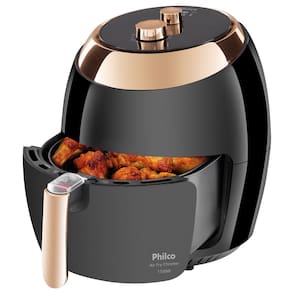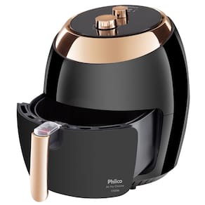 Fritadeira Air Fryer Philco Chrome 5,5 Litros PretaQuem disse que o gostoso não pode ser saudável?Buscar um estilo de vida saudável e uma alimentação equilibrada não é mais exceção e sim uma regra nos dias de hoje. Com uma rotina dividida entre tantas tarefas, utilizar eletroportáteis que facilitam o preparo da alimentação pode fazer toda a diferença! Pensando nisso, a Philco traz a fritadeira elétrica sem óleo air fryer Philco Chrome. Prepare alimentos crocantes por fora e macios por dentro, dispensando o uso de óleo!Como a fritadeira air fryer funciona?Você pode se perguntar: como um eletroportátil pode fritar um alimento sem gordura? Com os avanços tecnológicos, o óleo passou a ser dispensável. O sistema interno da fritadeira air fryer Philco funciona como um forno elétrico super potente. Quando ligada, uma hélice é acionada e o ar quente é responsável por todo o processo. Desta forma, o alimento é cozido rapidamente, ficando sequinho e cheio de sabor!Refeições saudáveisProjetada em metal e plástico, a fritadeira air fryer Philco é altamente durável. Com luzes de aquecimento e funcionamento, você poderá programar o timer e deixar que ela faça todo o trabalho, sem precisar checar a todo momento. Viu como a fritadeira sem óleo Philco é só vantagem?Cozinha muito mais prática e funcionalCom capacidade para 5,5 litros e um design que dará um toque de modernidade para sua cozinha, a fritadeira sem óleo Philco é prática e pode ser transportada para todos os lugares. Como é totalmente fechada, impede que o cheio de fritura se propague pelo ambiente.Perfeita para proporcionar praticidade e ainda garantir alimentos deliciosos que vão atender a todos os gostos e paladares, a fritadeira elétrica sem óleo air fryer Philco equipará sua cozinha com um produto que oferece alto desempenho e qualidade com a rapidez que você precisa.Características- Frita com pouquíssimo ou nenhum óleo; - Luzes de aquecimento e funcionamento; - Cesto removível, pode ser lavado em lava louças; - Com coletor de resíduos; - Não faz fumaça; - Controle de temperatura ajustável de 80°C até 200°C; - Base antiderrapante; - Capacidade do cesto de 5,5L; capacidade total da cuba de 6,5L; - Timer de 30 minutos; - Seletor de temperatura;Especificações técnicas- Marca: Philco- Modelo: Chrome - Cor: Preto- Composição: Metal e Plástico- Potência (W): 1700w- Temperatura máxima (°C):200 ºC- Consumo de energia (kW/h): 1,7 kW/h- Capacidade (litros): 6,5 L- Porta-fio: sim- Desligamento automático: sim- Cesto removível: Sim- Mantém aquecido: Sim- Tipo: Sem óleo- Voltagem 110v ou 220v (Não é bivolt)Conteúdo da Embalagem- Fritadeira- Manual de Instruções- Certificado de garantia e Mini Folders.Dimensões e Peso- Produto (A x L x P) 37,4 x 31,8 x 38cm- Peso 5,49KgGarantia de 12 meses pelo fabricante.