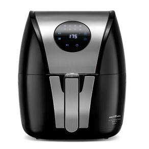 Fritadeira Air Fryer Digital Inox Philco com capacidade de 4,35 litros, painel digital touch, timer de 60 minutos, ajuste de temperatura de 80 a 200°C, cesto removível antiaderente, 8 funções pré-programadas e sistema de proteção contra superaquecimento.Porta-fio
