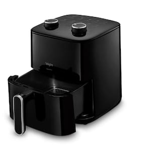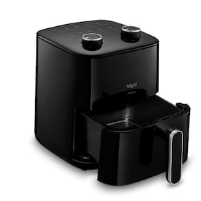Fritadeira elétrica sem óleo com 1400W de potência, controle de temperatura manual, temporizador ajustável com desligamento automático, grelha removível, tecnologia Air Circuit 360ª, revestimento antiaderente Black Resist e proteção contra superaquecimento.Porta-fio