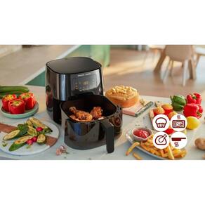 A única com Tecnologia RapidAir patenteada que garante o fluxo de ar por todos os lados, o cozimento mais rápido e uniforme, deixando os alimentos macios por dentro e crocantes por fora. São 2000W e capacidade total de 6,2l e útil de 1,2kg.Com ajuste de temperatura de 80 a 200 graus, timer de 60 minutos e desligamento automático. Display Digital.Fácil de lavar: peças removíveis e preparadas para a máquina de lavar.Inspire-se com + de 500 receitas no App NutriU