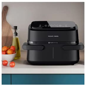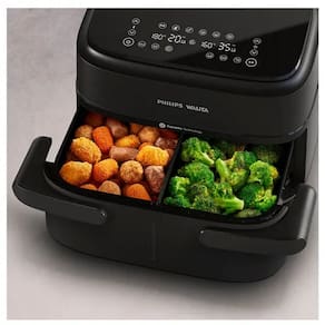 Descubra a inovação na sua cozinha com a Airfryer Série 1000, equipada com um duplo cesto de 7,1L e uma divisória para criar dois compartimentos independentes. A grelha removível facilita a limpeza e oferece mais espaço para preparar suas receitas favoritas. Destaques Tecnologia RapidAir Patenteada Garante um fluxo de ar otimizado, proporcionando um cozimento mais rápido e uniforme. Seus alimentos ficam macios por dentro e crocantes por fora. Capacidade Com capacidade total de 7,1L, que pode ser dividida em dois compartimentos de 3,55L, você tem flexibilidade para cozinhar diferentes pratos ao mesmo tempo. Aquecimento Independente Cada compartimento possui aquecimento independente, sincronização para que ambos fiquem prontos ao mesmo tempo, e função de reaquecimento, eliminando a necessidade do micro-Controle Digital Display digital para ajuste de temperatura de 40 a 200 graus, timer de 60 minutos, seis funções pré-definidas (incluindo a função manter aquecido) e desligamento automático.