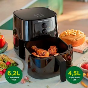 - Mais silêncio e economia no dia a diaA AirfryerSérie 3000 XL Analógica destaca-se por sua operação silenciosa, consome 23% menos energia e é 18% mais rápida*, oferecendo uma experiência eficiente e tranquila na cozinha.