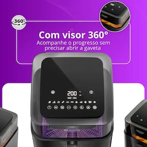 Com visor transparente de 360º, você acompanha o preparo dos alimentos sem abrir a gaveta. E para garantir um cozimento uniforme, ela avisa com o Shake Time a hora certa de mexer a comida. Além disso, você pode programar o início do preparo e chegar em casa com a refeição pronta!