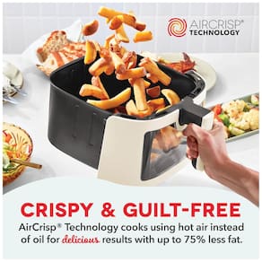 Liberte a diversão dos petiscos com a Fritadeira Digital de Ar DASH 7 litros Clear View. Com capacidade extra grande de 7 litros, é perfeita para refeições em família e entretenimento com amigos. Seu painel digital fácil de usar oferece 11 configurações pré-programadas, além da opção de personalizar temperaturas e tempos de cozimento. A tecnologia AirCrisp cozinha de forma saudável com circulação de ar quente a 360°, resultando em pratos crocantes com até 75% menos gordura que a fritura tradicional. Com um funcionamento silencioso a 65 decibéis e a função Shake Reminder, esta fritadeira é a companheira ideal na cozinha. A gaveta Clear View proporciona uma visão clara do processo de cozimento, garantindo resultados perfeitos a cada uso. Inclui guia de receitas para explorar novos sabores. Moderna e eficiente, a Fritadeira Digital de Ar DASH é um item essencial para a sua cozinha.