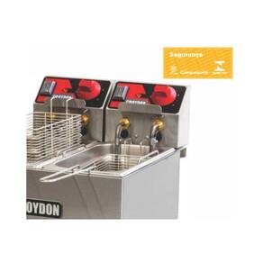 Atenção: Na voltagem de 110 volts, a potência da fritadeira é de 1650 watts em cada cuba. Na voltagem de 220 volts, a potência da fritadeira é de 2000 watts em cada cuba.