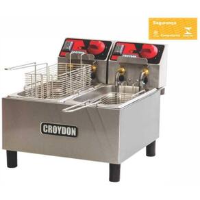 Fritadeira Elétrica 6 Litros 2 Cestos FC2A Croydon. Ideal para lanchonetes, padarias, restaurantes e similares. Equipamento com duas cubas independentes, proporcionando praticidade no preparo simultâneo sem mistura de sabores, além de fácil limpeza e manutenção. Estrutura em aço inox, cuba resistente e cesto de fritura prático. CUBAS: 2 GN 1/3. CAPACIDADE DE ÓLEO: 2x3l. PRODUÇÃO MÁXIMA: 24kg/h. POTÊNCIA: 2x2000W. CORRENTE: 2x9,1A. CONSUMO: 2x1,0kWh. PESO BRUTO: 8,1kg. DIMENSÕES(CxAxL): 45x34x36cm. Fritadeira Elétrica 6 Litros 2 Cestos FC2A Croydon é na Atau.