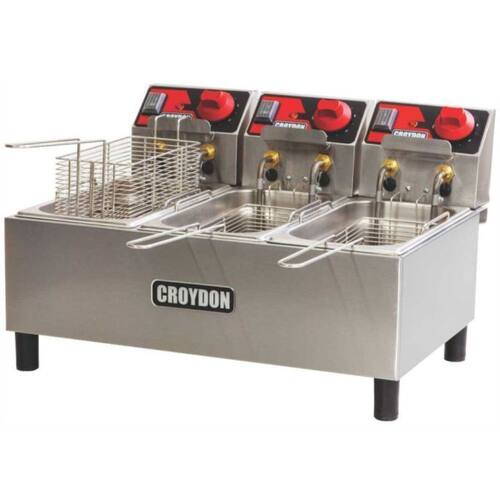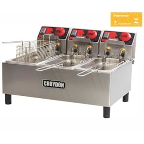 Fritadeira Elétrica 9 Litros 3 Cestos FC3A Croydon. Ideal para lanchonetes, padarias, restaurantes e similares. Equipamento robusto com três cubas independentes, proporcionando versatilidade, permitindo preparar três diferentes itens simultaneamente, sem misturar sabores, além de fácil limpeza e manutenção. Estrutura em aço inox, cuba resistente e cesto de fritura prático. CUBAS: 3 GN 1/3. CAPACIDADE DE ÓLEO: 3x3l. PRODUÇÃO MÁXIMA: 36kg/h. POTÊNCIA: 3x2000W. CORRENTE: 3x9,1A. CONSUMO: 3x1,0kWh. PESO BRUTO: 11,5kg. DIMENSÕES(CxAxL): 45x34x54cm. Fritadeira Elétrica 9 Litros 3 Cestos FC3A Croydon é na Atau.