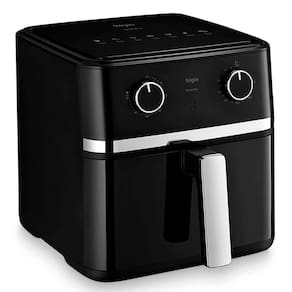 Sistema Air Circut 360º para circulação de ar ultrarrápida, grelha removível com tripla camada de revestimento antiaderente Black Resist, controle de temperatura ajustável, temporizador com aviso sonoro e desligamento automático, proteção contra superaquecimento, base antiderrapante e alça fria.Porta-fio