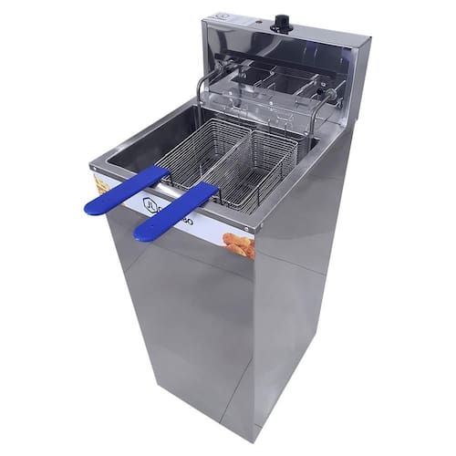 A Fritadeira Elétrica Água e Óleo JL Colombo Gabinete Cuba 36 Litros 5000W 148101 é uma excelente escolha para restaurantes, lanchonetes, food trucks, cantinas escolares e cozinhas industriais. Com capacidade de 16 litros de óleo, 2 litros de água e 0,5 kg de sal, ela é perfeita para fritar uma variedade de alimentos. A cuba é feita de aço inox 430 monobloco escovado e o corpo é de aço inox polido, garantindo durabilidade e facilidade na limpeza. O cesto tem dimensões de 24 x 11 x 10 cm, permitindo fritar até 750g por vez. A fritadeira opera em uma tensão de 220V, com uma potência de 5000w e um consumo de 5kW.h. Além disso, a fritadeira é certificada pelo INMETRO, garantindo sua segurança e eficiência. As fritadeiras de água e óleo funcionam com a água e o sal no fundo da cuba e o óleo por cima. As resistências elétricas aquecem apenas o óleo para a fritura. Os resíduos dos alimentos caem na água, mantendo o óleo limpo. Isso proporciona uma fritura de alta qualidade e sequinha.