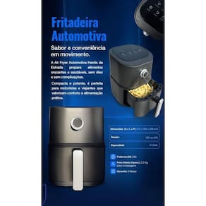 A Fritadeira Automotiva Heróis da Estrada leva o conceito de conforto e alimentação saudável para o dia a dia de quem vive na estrada. Com tecnologia de circulação de ar quente e capacidade de 3 litros, ela permite preparar alimentos crocantes e saborosos, sem óleo e com muito mais praticidade, onde quer que você esteja.
