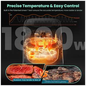 Recursos especiais: Desligamento automático, sonda térmica digital inteligente, ajuste de temperatura em tempo real