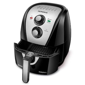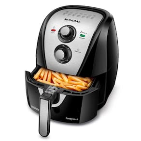 Que a fritadeira air fryer é um item que agrega praticidade e rapidez na sua cozinha você já sabe, né? E se a gente te falar que é possível que esse portátil tão amado pode deixar sua rotina ainda mais prática, rápida e saudável. A air fryer Mondial AFN40BI conta com cesto quadrado e 4 litros de capacidade total. Esse formato oferece maior aproveitamento do seu espaço interno, além de permitir que prepare alimentos mais rápidos e deixar assados por igual. Essa fritadeira Mondial é perfeita para assar, cozinhar, gratinar e fritar seus alimentos mais saudáveis. A tecnologia de circulação de ar quente e a alta potência possibilitam rapidez no preparo das receitas e praticidade em sua rotina na cozinha. Prepare diversos tipos de refeições, como: petiscos, massas, carnes, pastéis, pão de queijo, churros, peixes e muito mais. A fritadeira elétrica Mondial possui um design compacto e ocupa menos espaço na bancada. Seu cesto andiaderente Duraflon, evita que os alimentos grudem e facilita no momento da limpeza. E por falar em limpeza, a cuba e o cesto são removíveis trazendo ainda mais praticidade para o seu dia a dia. Garanta o melhor para a sua família com a fritadeira air fryer mondial ANF40BI.