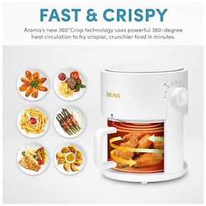 Rápido e Crocante: A nova tecnologia 360Crispy da Aroma utiliza circulação de calor poderosa em 360 graus para fritar alimentos mais crocantes em minutos. Coloque o jantar na mesa ainda mais rápido!