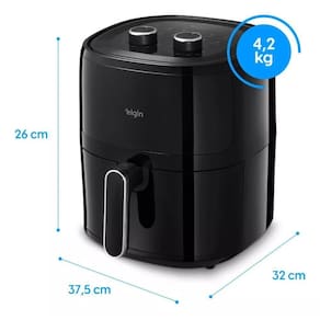 Tecnologia Air Circuit 360º, Timer de 60 minutos com aviso sonoro, Revestimento antiaderente Black Resist, Cesto quadrado para melhor otimização do espaço, Proteção contra superaquecimento, Frita com 80% menos gordura.Desligamento automático