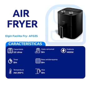 Diga adeus ao óleo e olá à praticidade com a Fritadeira Elétrica Facilita Fry da Elgin! Com 3,5 litros de capacidade e um design moderno que cabe em qualquer cozinha, ela é ideal para quem quer comer bem, com muito sabor e sem culpa. Seja aquela batatinha crocante, frango suculento ou até um bolinho no fim da tarde, ela dá conta do recado com 1400 W de potência e tecnologia de sobra.