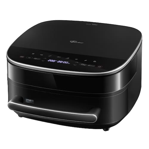 Fritadeira Elétrica Air Fryer Fischer Dual Grill 6L. Possui 4 em 1: frita, assa, aquece e desidrata. Conta com 9 receitas pré-programadas com acionamento no painel Touch Screen. Resistências superior e inferior para distribuição uniforme do calor. Função especial para pizza congelada. Cesto antiaderente e grade metálica removível.Desligamento automático